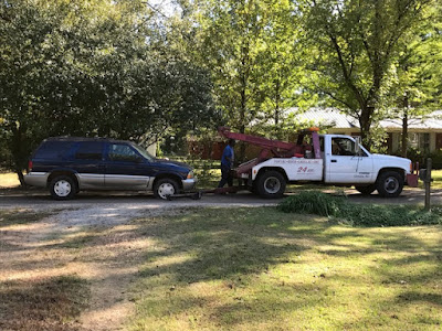 I got home just in time to watch the wrecker guy hook Jimmy up and tow him off.